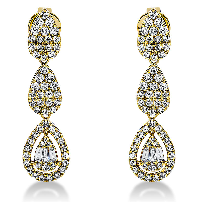 Ohrschmuck 18 kt GG, 26 Brill. 0,31 ct, TW-si, 6 Trap. 0,10 ct, TW-si, 92 Brill. 0,56 ct, TW-si