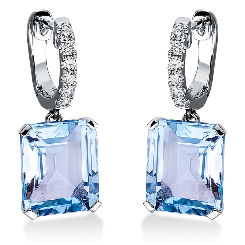 Ohrschmuck 18 kt WG, 12 Brill. 0,26 ct, TW-si, 2 Topase 11,00 ct sky blue
