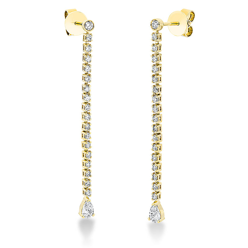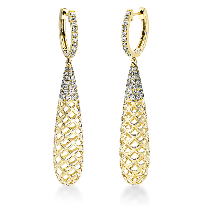 Ohrschmuck 18 kt GG. 2 Brillanten 0.06 ct. TW-si. 2 Tropfen 0.28 ct. TW-si. 34 Brillanten 0.47 ct. TW-si. H:45.0 mm. B:3.3 mm. S:2.3 mm