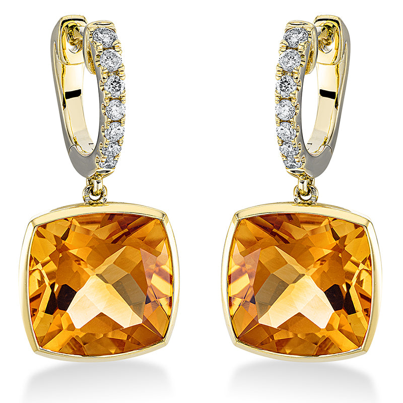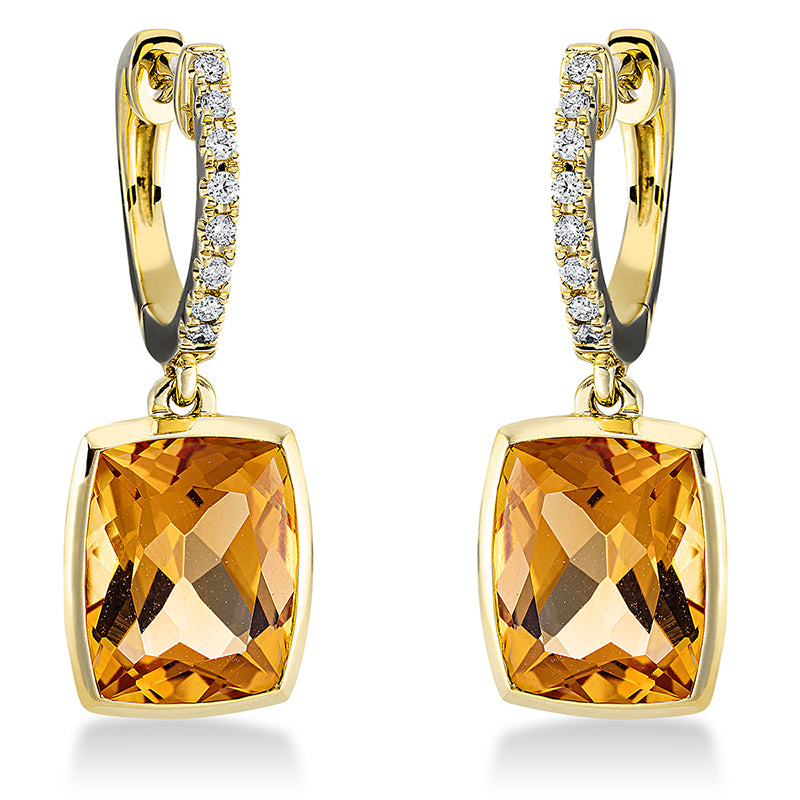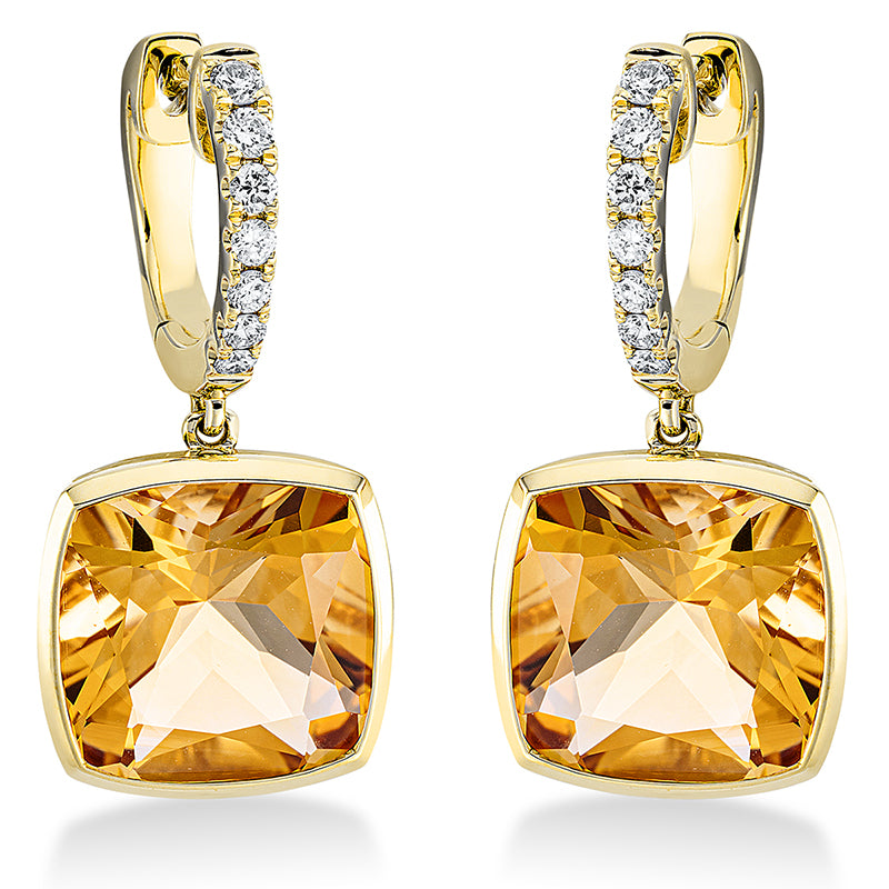 Ohrschmuck 18 kt GG, 14 Brill. 0,19 ct, TW-si, 2 Citrin 7,10 ct gelb