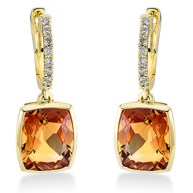 Ohrschmuck 18 kt GG, 14 Brill. 0,19 ct, TW-si, 2 Citrin 7,60 ct mandarin