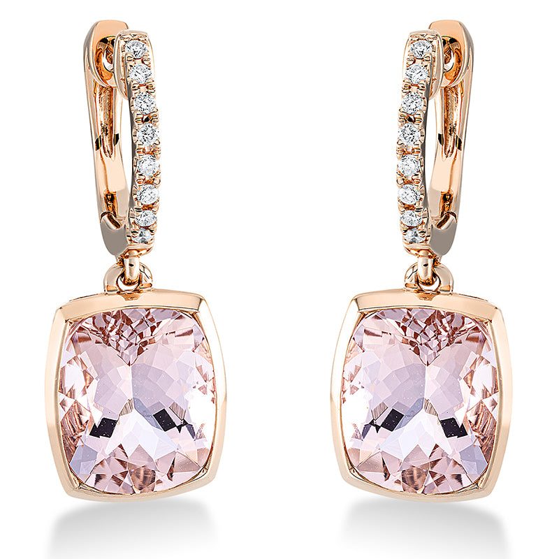 Ohrschmuck 18 kt RG, 16 Brill. 0,10 ct, TW-si, 2 Morganit 6,00 ct pink