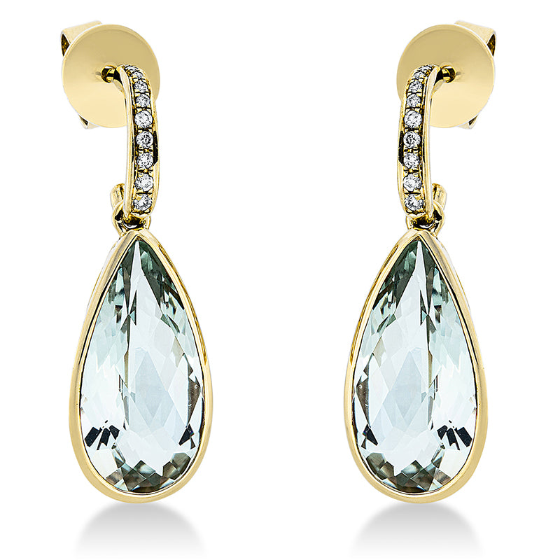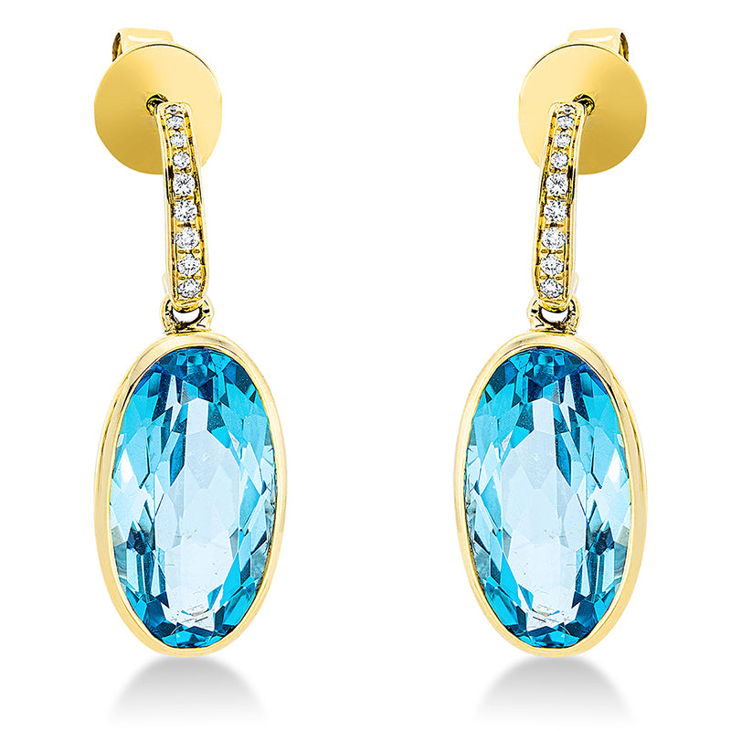 Ohrschmuck 18 kt GG, 18 Brill. 0,09 ct, TW-si, 2 Topase 12,00 ct blau