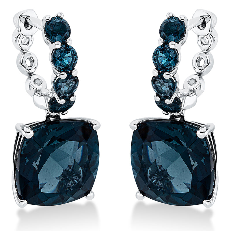 Ohrschmuck 18 kt WG, 2 Iolith 2,50 ct blau, 4 Topase 10,00 ct Lond. blue, 4 Topase 4,00 ct blau