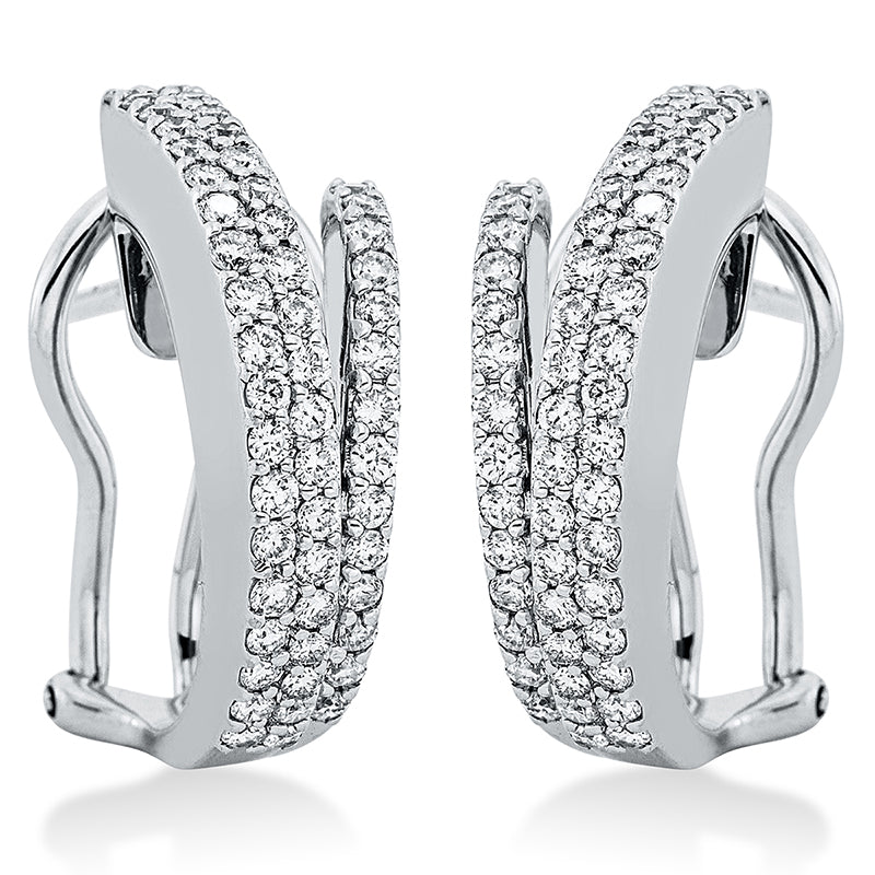 Creolen 18 kt WG. 24 Brillanten 1.32 ct. TW-si. 14 Brillanten 0.67 ct. TW-si. H:24.5 mm. B:18.4 mm. S:2.3 mm