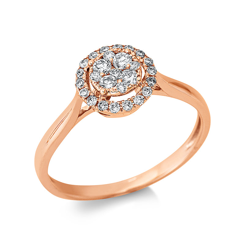 Ring 18 kt RG, 4 Brill. 0,14 ct, TW-pi, 23 Brill. 0,16 ct, TW-pi