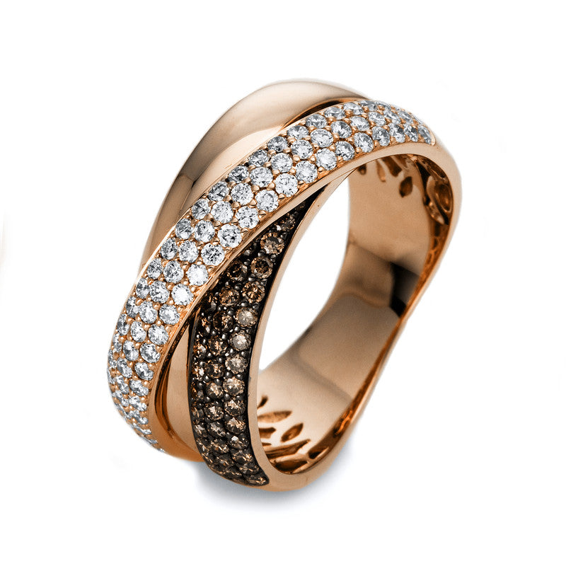 Ring 18 kt RG. 76 Brillanten 0.56 ct. W-si. 46 Brillanten 0.40 ct. braun. B:9.1 mm. Weite:54