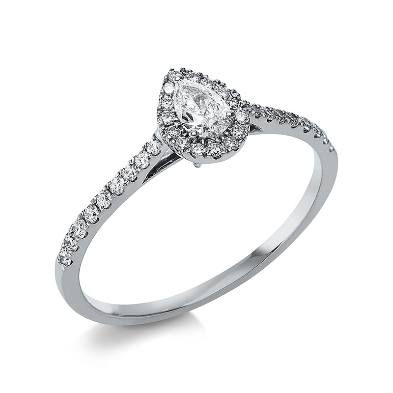 Ring 18 kt WG, 1 Tropfen 0,15 ct, TW-si, 33 Brill. 0,17 ct, TW-si