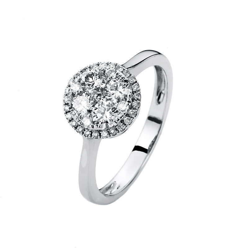 Ring 18 kt WG, 4 Brill. 0,73 ct, TW-vsi/si, 29 Brill. 0,14 ct, TW-vsi/si