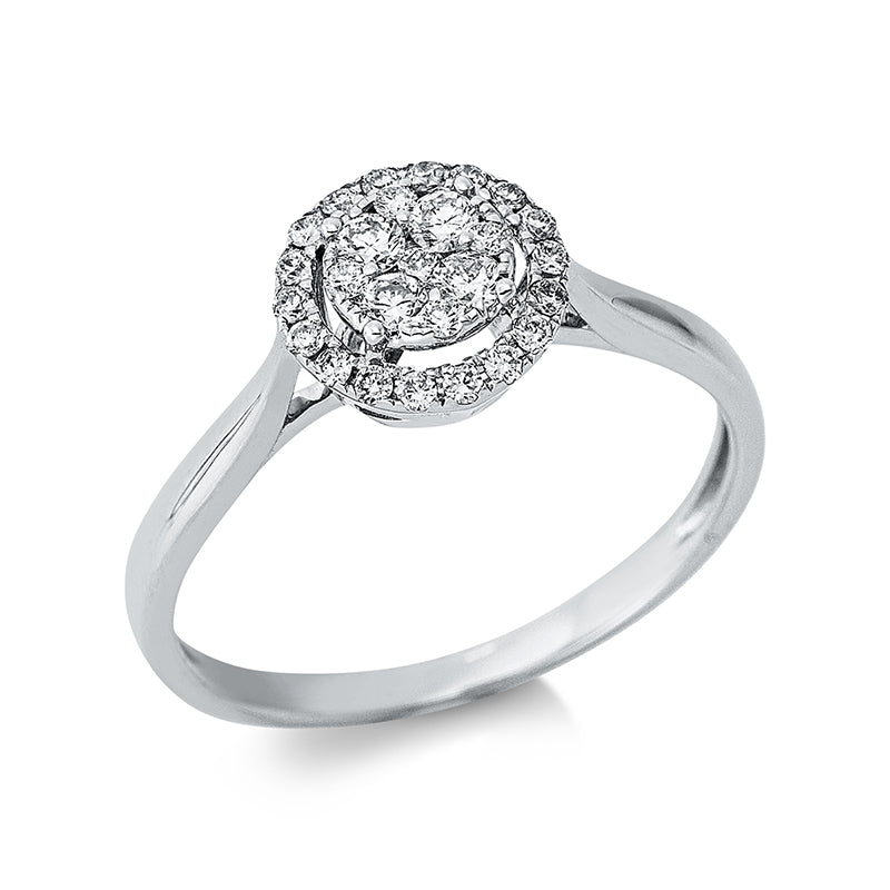 Ring 18 kt WG, 4 Brill. 0,28 ct, TW-vsi, 26 Brill. 0,12 ct, TW-vsi