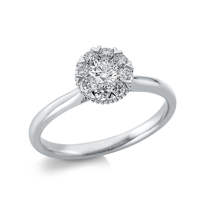 Ring 18 kt WG. 1 Brill. 0.23 ct. TW-si. 8 Brillanten 0.29 ct. TW-si. Weite:54