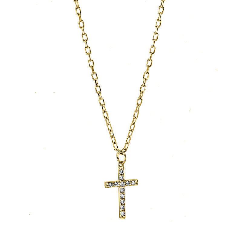 Collier 18 kt GG Kreuz. 12 Brillanten 0.06 ct. TW-si. L:45.7 cm