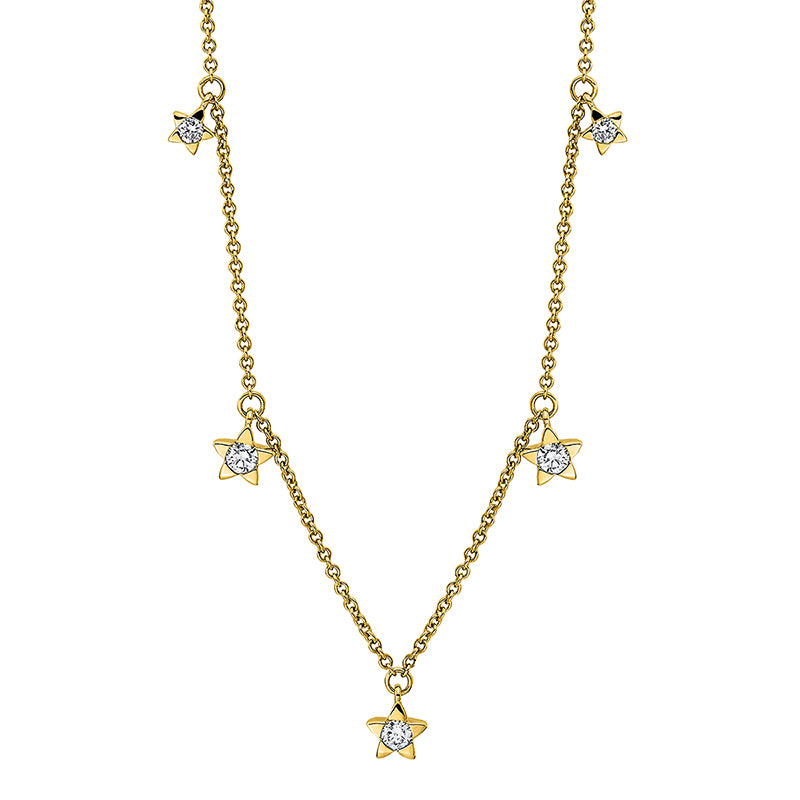 Collier 18 kt GG Stern. 3 Brillanten 0.15 ct. TW-si. 2 Brillanten 0.06 ct. TW-si. L:45.7 cm